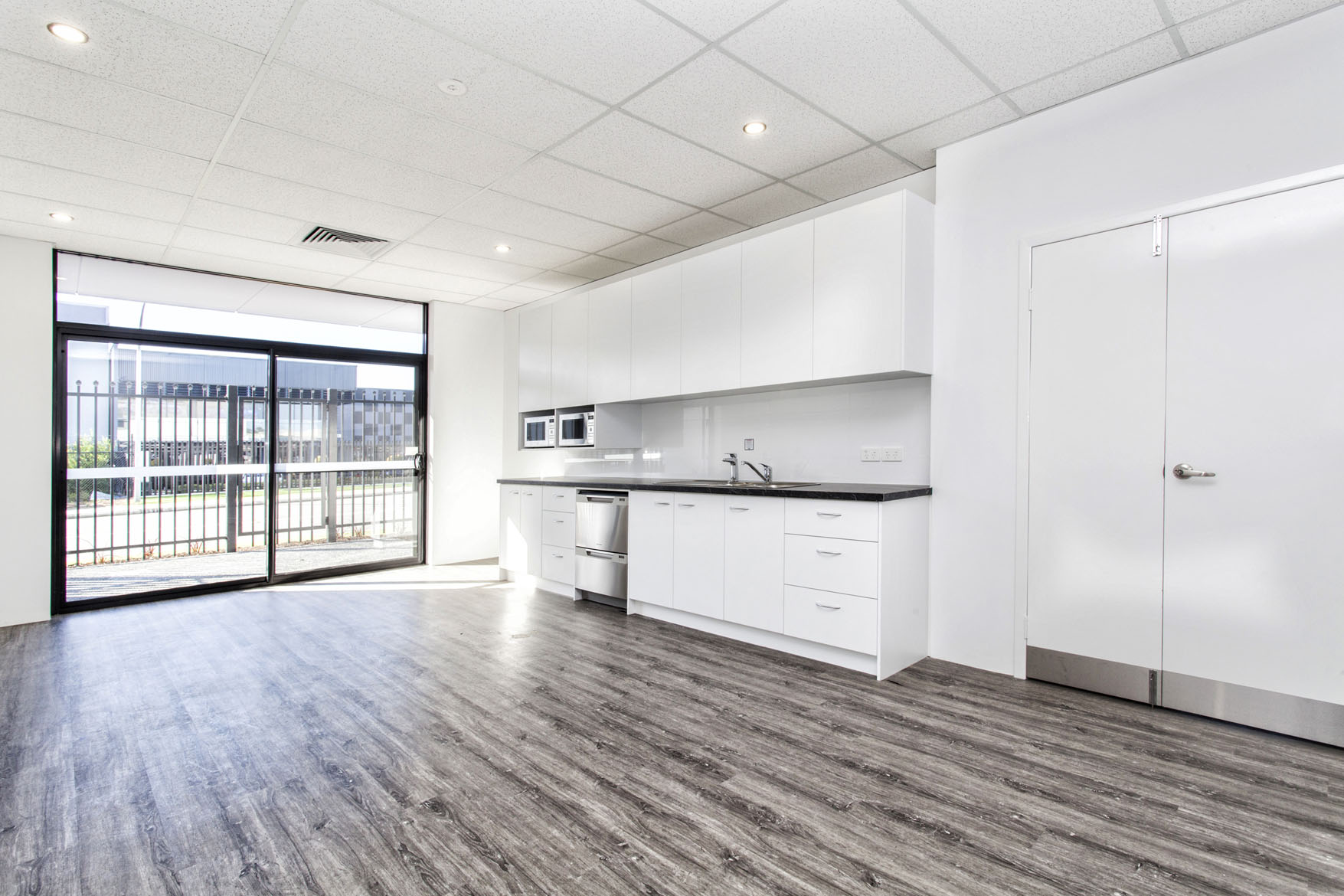 Lunch and conference rooms were fitted out with 700mm deep laminated bench tops with doors and draws and stainless steel sinks. Overhead cupboards, allowances for dishwasher and microwaves were also a requirement in the lunch room.
