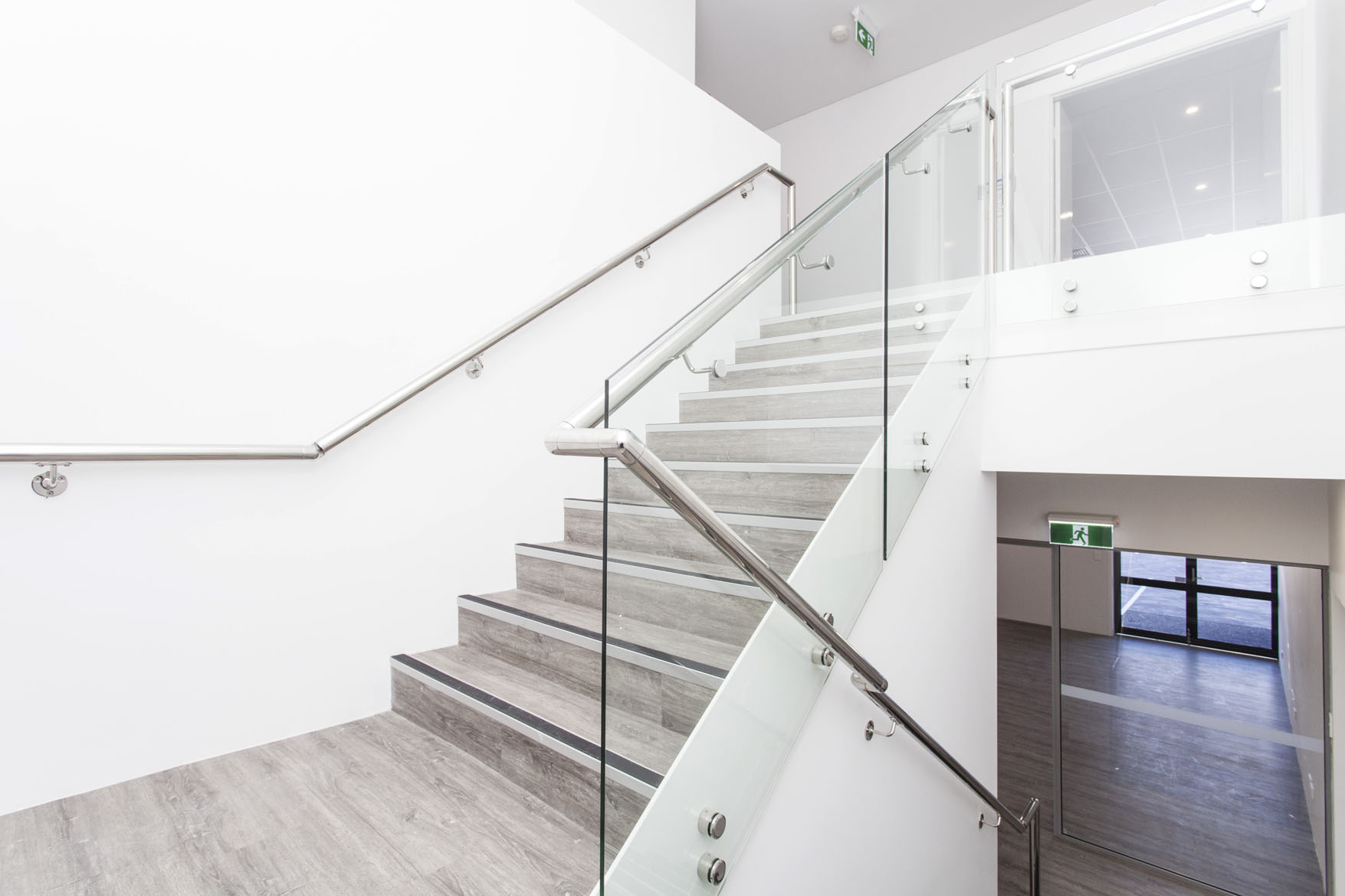 The training facility also required commercial grade carpet tiles and slip resistant tiling to the wet areas. The reception, corridors and stairs were fitted with Expona commercial vinyl plank, which lends itself well to heavy foot traffic.